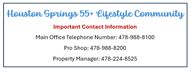 Main Office Number: 478-988-8100 Pro Shop: 478-988-8200 HOA- Property Manager: 478-224-8525